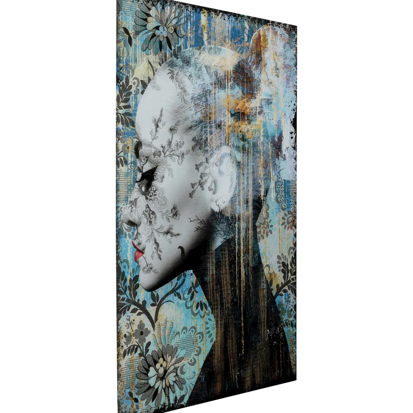 Retro Et Moderne,Net Et Delave,Noir Et Blanc Et Pourtant En Quelque Sorte Colore ! Ce Tableau En Verre Au Format Vertical Melange Les Contraires Et Y Parvient Incroyablement Bien. Avec Le Portrait D Une Femme Et Des Motifs Floraux Abstraits,Le Motif Photographique Est Difficile A Surpasser En Termes De Details. La Photographie Detournee Est A La Fois Moderne Et Abstraite. Dans Le Salon,L Entree Ou Meme Le Cafe Et Le Restaurant,Le Tableau En Verre Est Une Décoration Murale Exceptionnelle.