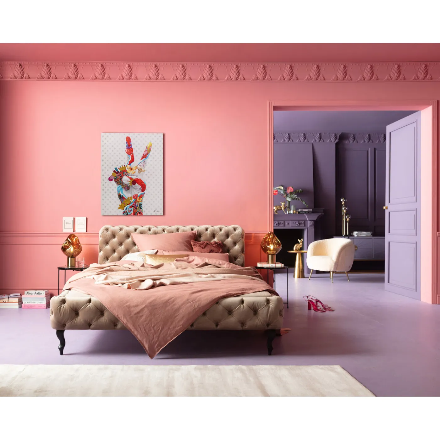 Sur La Toile Blanche Et Grise Avec Des Etoiles Argentees Scintillantes,Le Signe De La Paix Se Dresse Devant Vous. Ce Tableau Mural Est Si Detaille Que Vous Découvrirez Sans Cesse De Nouveaux Motifs Sur La Main : Un Papillon,Un Anneau En Forme De Tete De Mort Ou Une Couronne Avec Des Pierres Scintillantes. Le Tableau Sur Toile Represente Quelque Chose De Particulier Grace Aux Differents Effets Produits Par Les Décorations Faites A La Main Et Les Couleurs Acryliques Vives Aux Motifs Insolites. En Tant Que Décoration Murale Moderne,Il Donne Du Peps A Votre Salon Et Apporte Des Touches Colorees Et Eclatantes Dans La Piece.