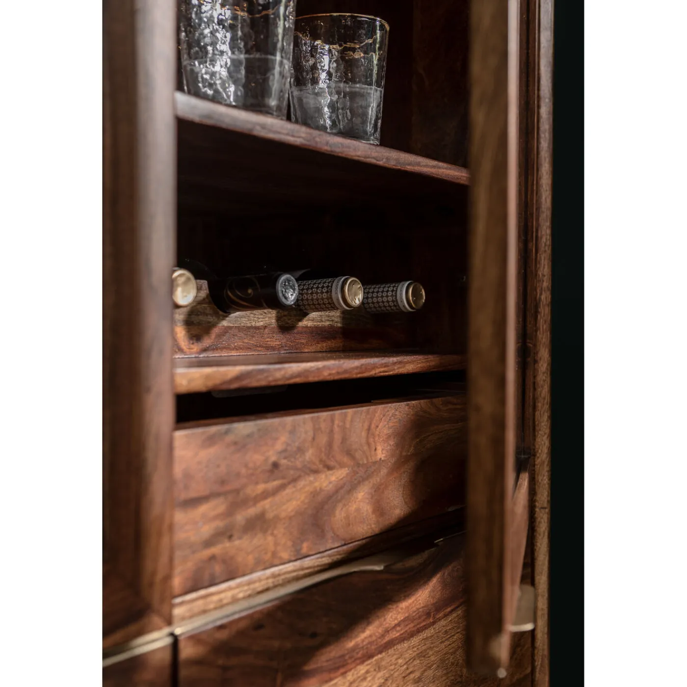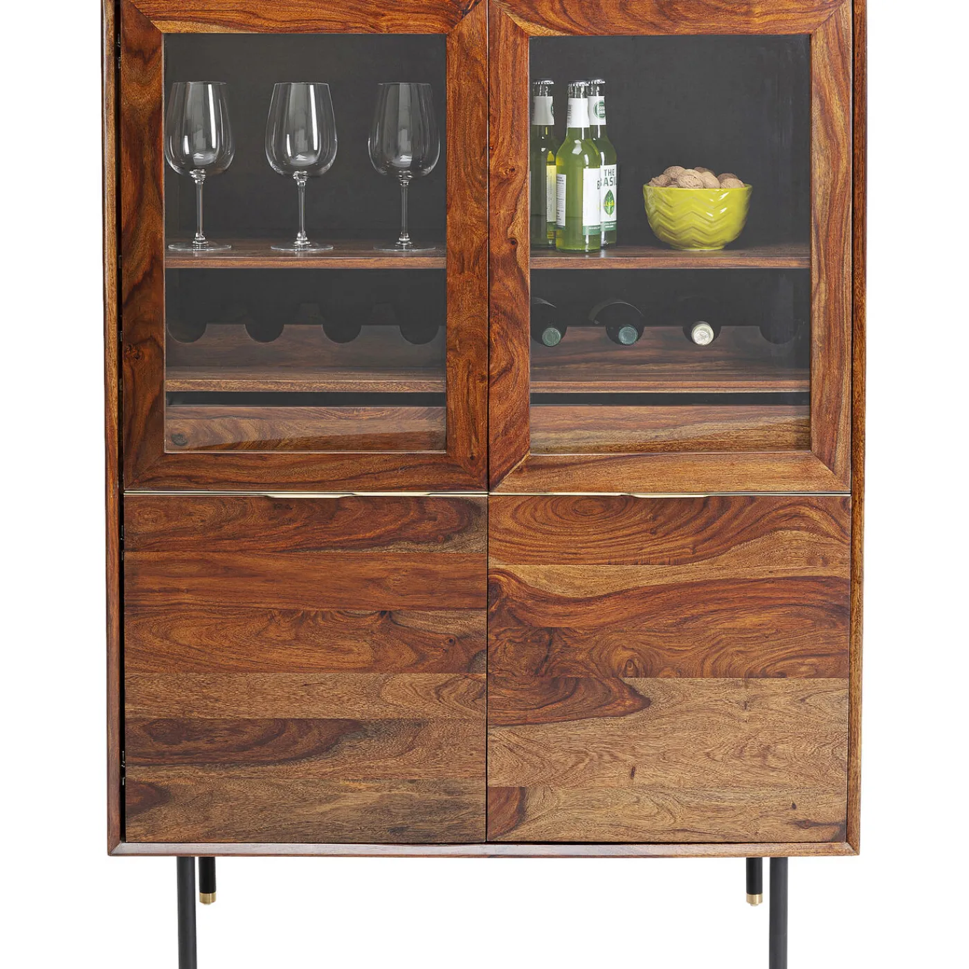 - Beautiful Display Cabinet With Fronts And Body Made Of Solid Sheesham Wood In The Best Scandinavian Design Tradition-A Modern Classic With Lots Of Storage Space